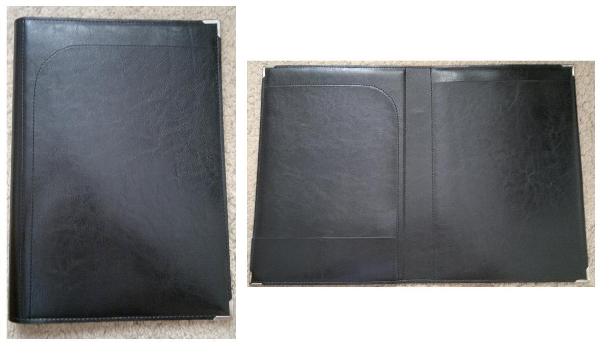 - sisäosat: pyöreäkulmainen tasku, tasku(t) käyntikortille ja paikat kynälle + lehtiölle
